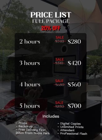 Take advantage of our incredible photo booth booking sale, offering an unbeatable 20% off! Availability is limited, so act fast to secure your date and make your event unforgettable.
